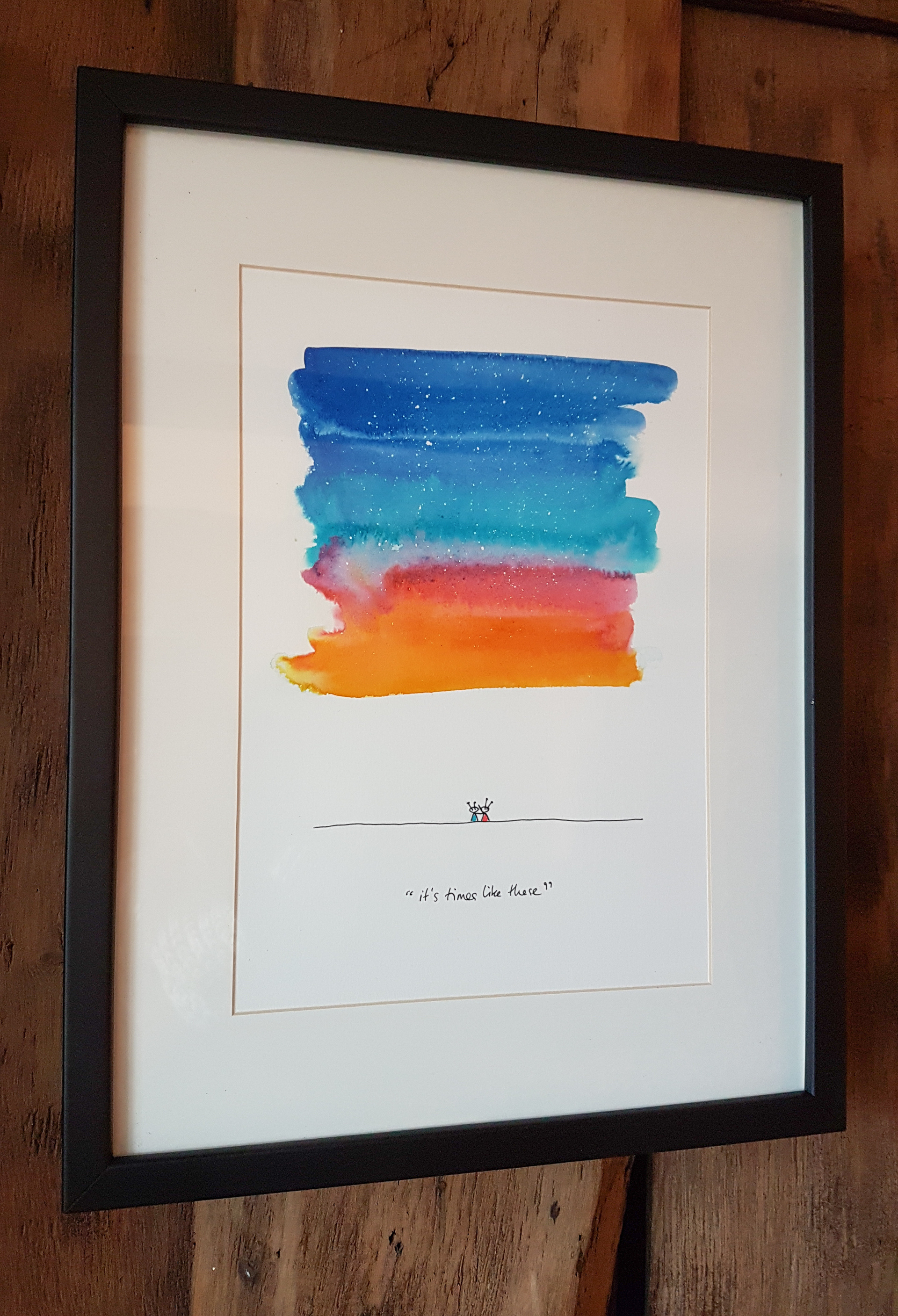 A4 artwork mounted in upcycled aluminium frames.